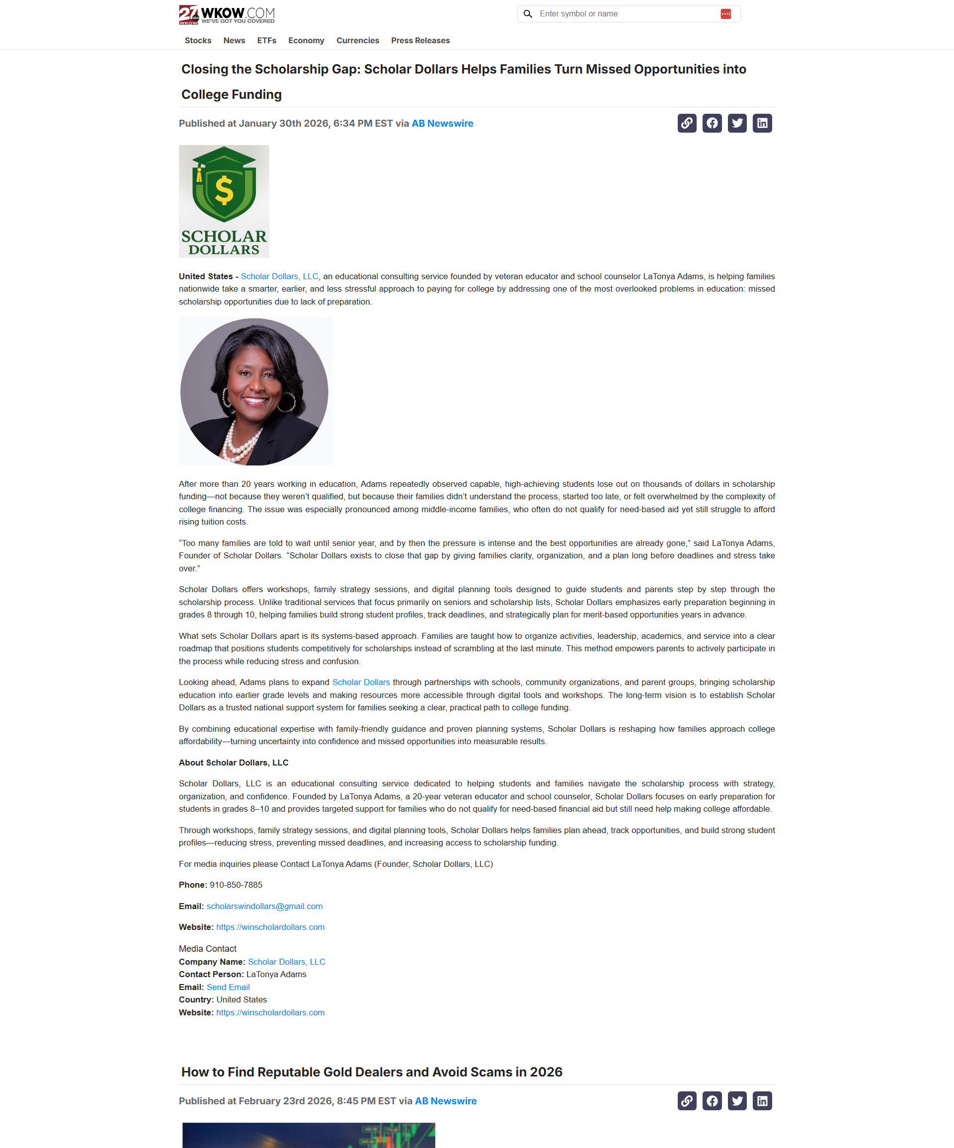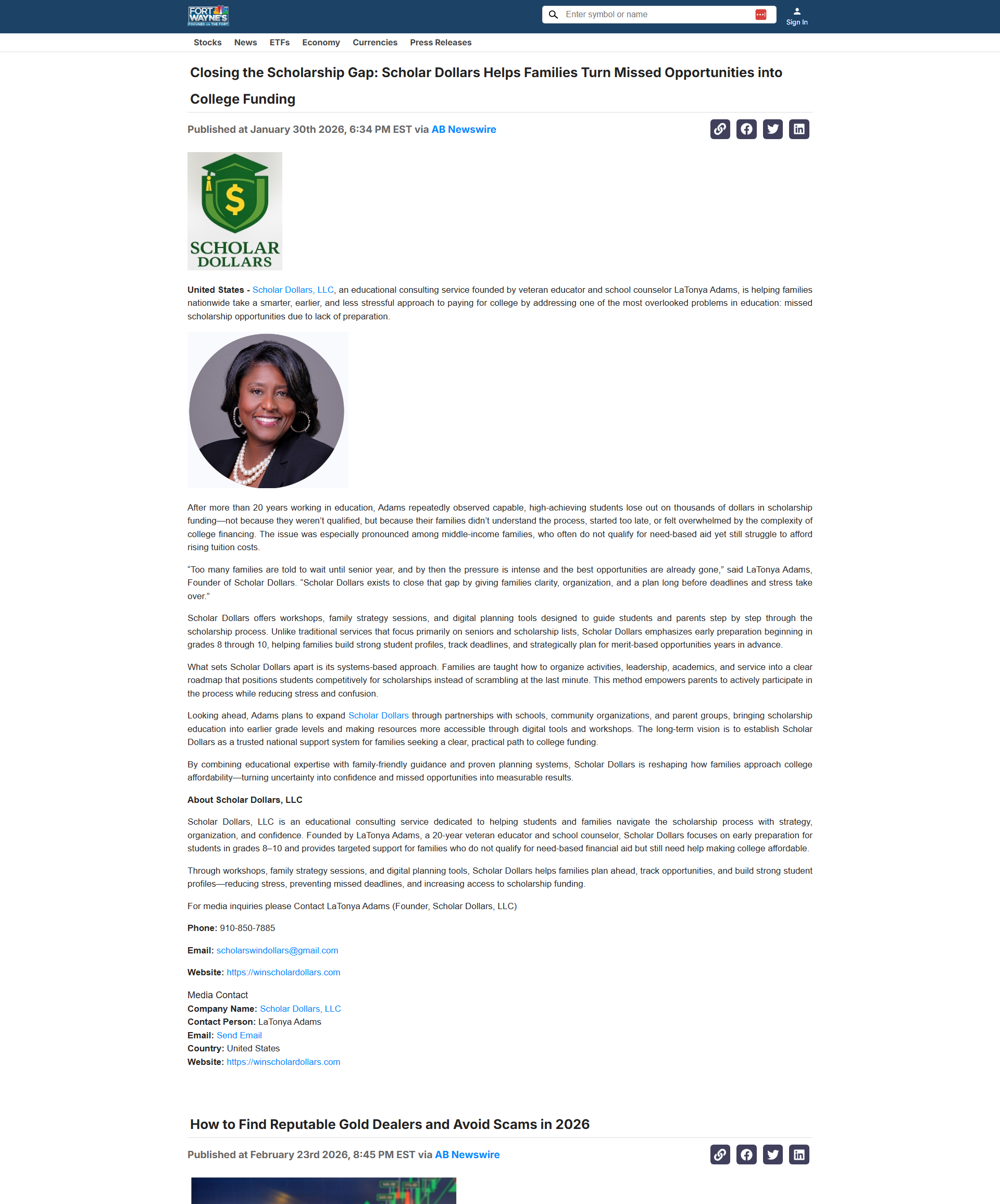 I’m LaTonya Adams, a veteran educator and scholarship strategist with over 20 years of experience supporting students and families across K–12 education. I have a deep, behind-the-scenes understanding of how academic choices impact future scholarship opportunities. Throughout my career, I noticed that many high-achieving students were missing out on scholarships, not because of ability, but because of timing, positioning, and lack of clear guidance. Families were doing everything they were told, yet still facing overwhelming college costs, especially those who earn too much for traditional financial aid. That disconnect is what I call the scholarship gap.